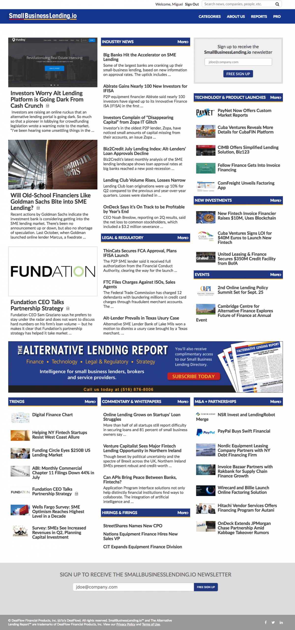 AlternativeLending.io is a digital platform dedicated to tracking innovation, strategy, and regulatory shifts in the non-bank commercial finance space. The site features original content on fintech and lending, as well as a premium directory of over 1,000 lending companies that cater to small businesses. The platform is designed for professionals in finance, fintech, and legal industries looking to stay ahead of emerging trends and discover new lending partners.